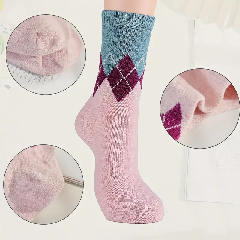 5 Pairs Argyle Pattern Socks, Retro & Warm Mid Tube Socks, Women’s Stockings & Hosiery