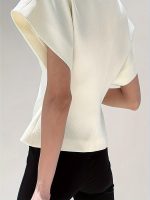 solid button front asymmetric blouse stylish short sleeve blouse for spring summer womens clothing details 4