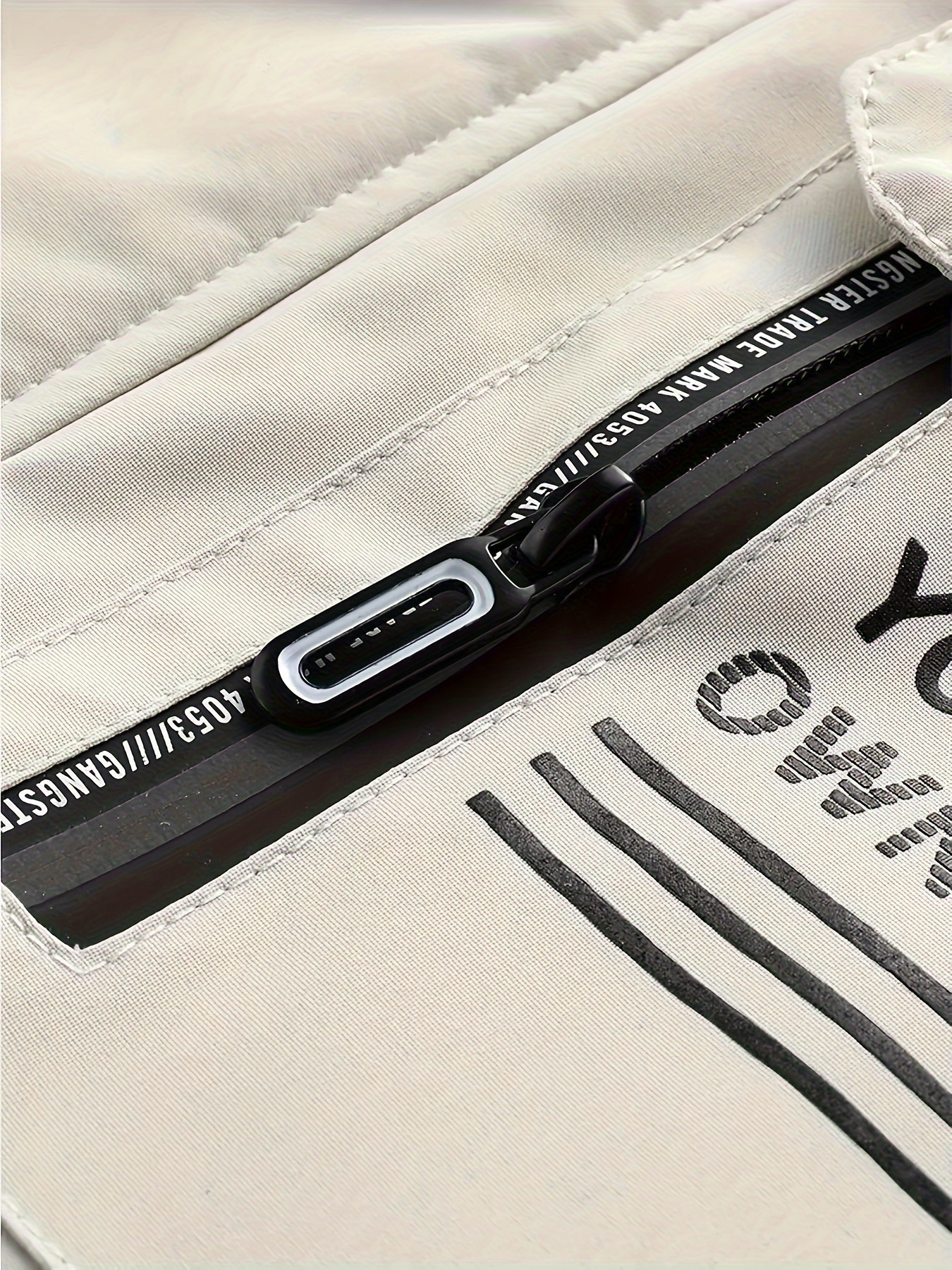 mens chic hooded windbreaker jacket casual multi pocket jacket details 4