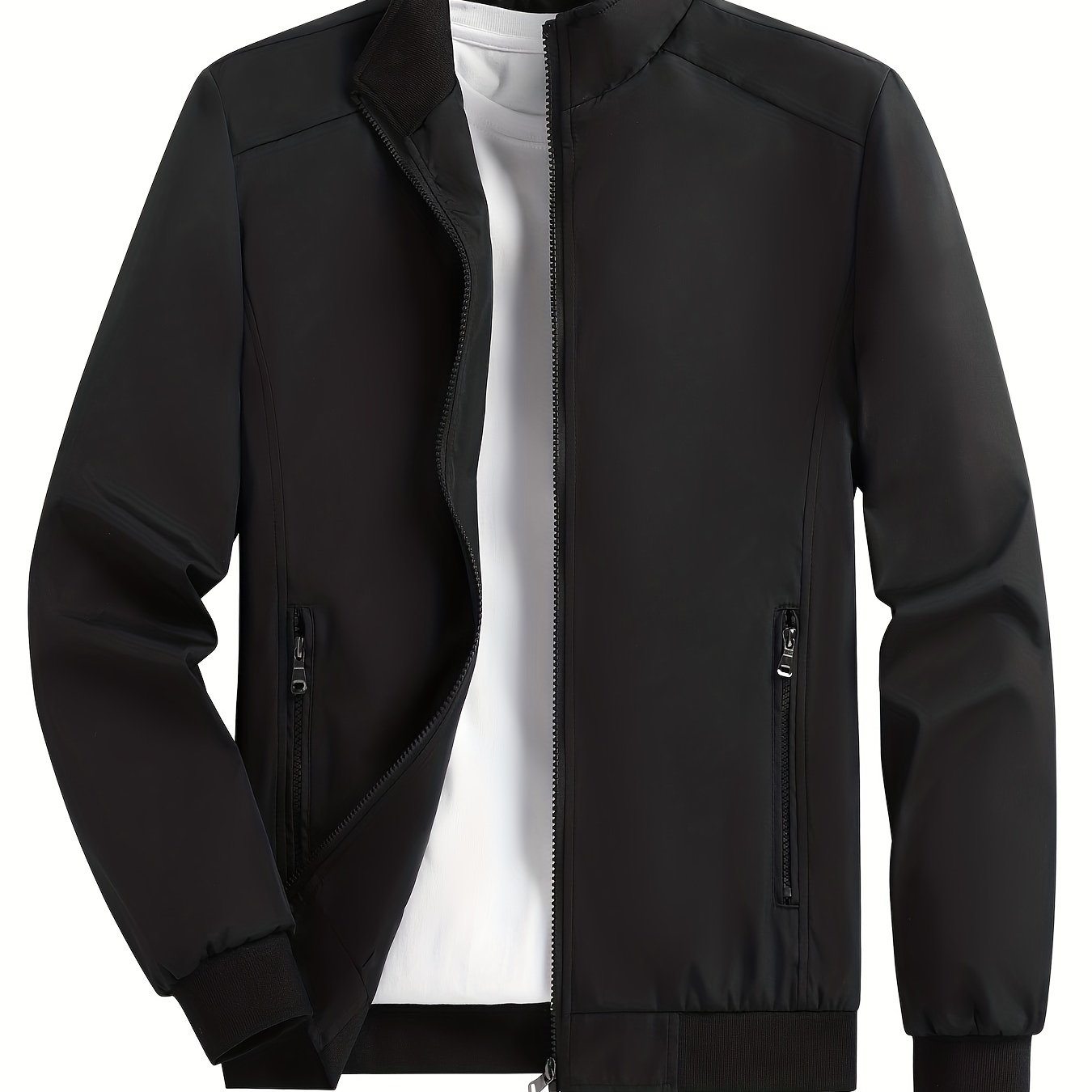 Men’s Stylish Solid Jacket with Breathable Stand Collar and Pockets for Spring and Fall