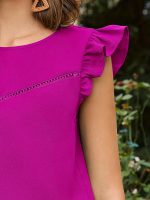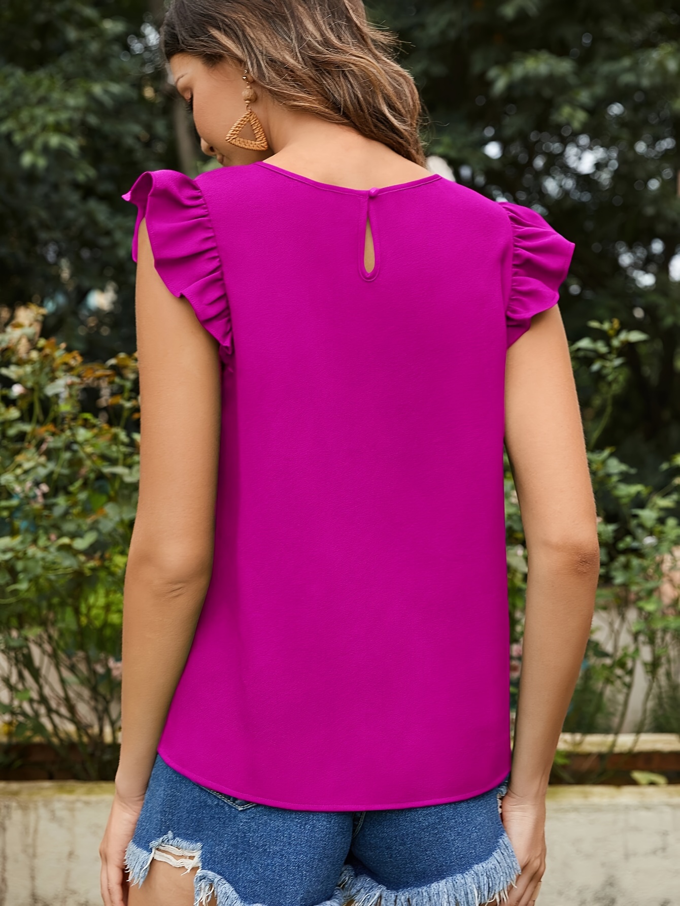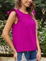 i can say is that Solid Ruffle Trim Hollow Out Blouse, Elegant Crew Neck Blouse For Spring & Summer, Women’s Clothing is great. I like it.