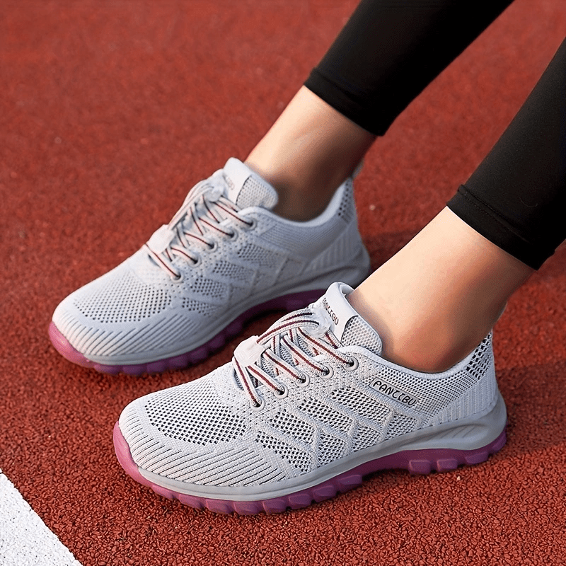 Women’s Breathable Flying Woven Sneakers – Lightweight Casual Lace Up Outdoor Sport Shoes